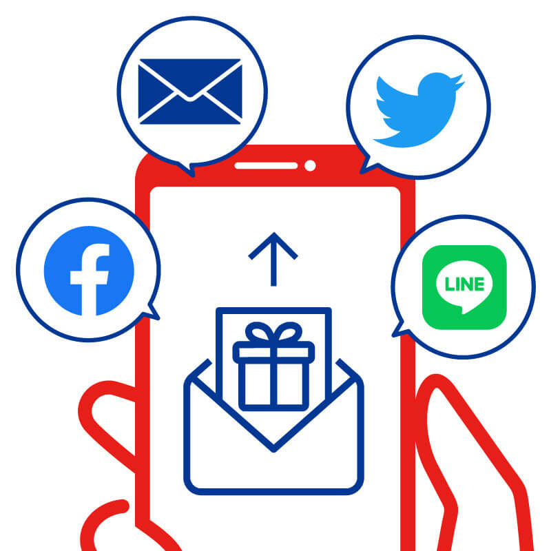 メールやLINE・Twitter・Facebook等お好きなSNSでギフト券を贈ることができます